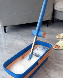 The accompanying collapsible bucket is just the right size, moves perfectly with wheels underneath, and stores perfectly for clutter free, clean living.